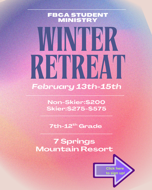 The Student Ministry at FBCA is here to give teenagers, in 7th-12th grades, a place to serve, worship, hang out, and learn about their faith. Building relationships with you and your student is the priority, as we come alongside to teach, mentor and help your child grow closer to Jesus. This is prime time to help students discover their gifts, how they can be used to glorify God, and who they are in Christ.
