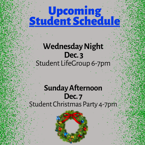 Meet in the *Student Garage for Snack Supper at 5:45 p.m. Then, we'll jump into worship, teaching and connecting in discussion groups. Student Worship meets from September to May.